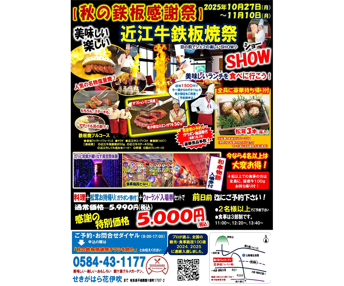 📞 ご予約・お問い合わせ:関ケ原グルメガーデン 花伊吹